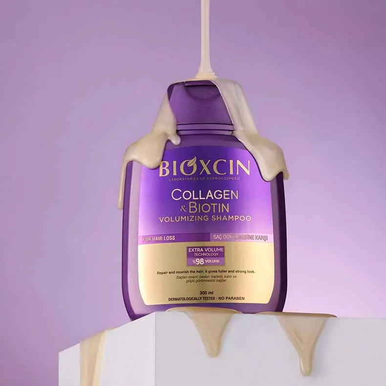 شامپو بیوکسین Collagen & Biotin حجم ۳۰۰ میل محصولی تخصصی برای کسانی است که با ریزش مو همراه با کاهش حجم مواجهاند یا احساس میکنند موهایشان نازک شدهاند و نیاز به تغذیه و حجم بیشتری دارند. این شامپو با ترکیب «کلاژن هیدرولیز شده»، بیوتین و پپتیدهای فعال همراه با فرمول اختصاصی BioComplex B11، ریشه مو را تقویت کرده، ساختار مو را ضخیمتر میسازد و حجم بیشتری به مو میدهد.