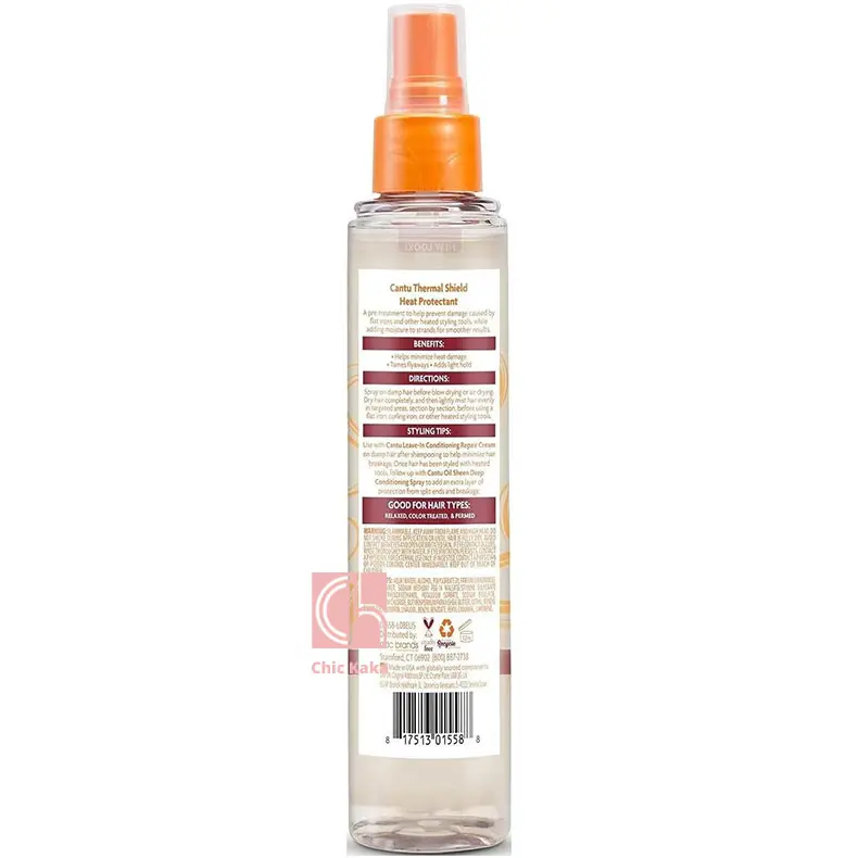 اسپری محافظ حرارت و ضدوز کنتو Cantu Shea Butter Thermal Shield Heat Protectant 151ml راهحلی حرفهای برای افرادی است که روزانه از سشوار، اتوی مو یا فرکننده استفاده میکنند. این اسپری با ترکیبات غنی از شی باتر خالص، یک لایه محافظ حرارتی روی تارهای مو ایجاد میکند تا از آسیب ناشی از حرارت جلوگیری شود و در عین حال به مو نرمی، لطافت و درخشندگی طبیعی بدهد.