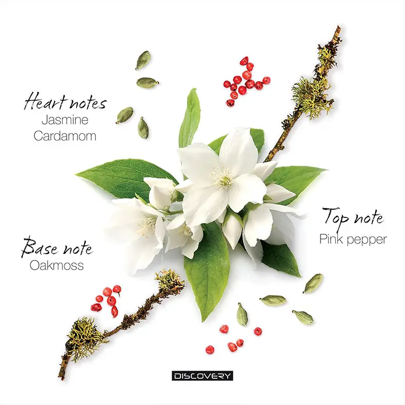 - نتهای میانی (Heart Notes): آویشن (Thyme)، هل (Cardamom)، یاسمن (Jasmine).