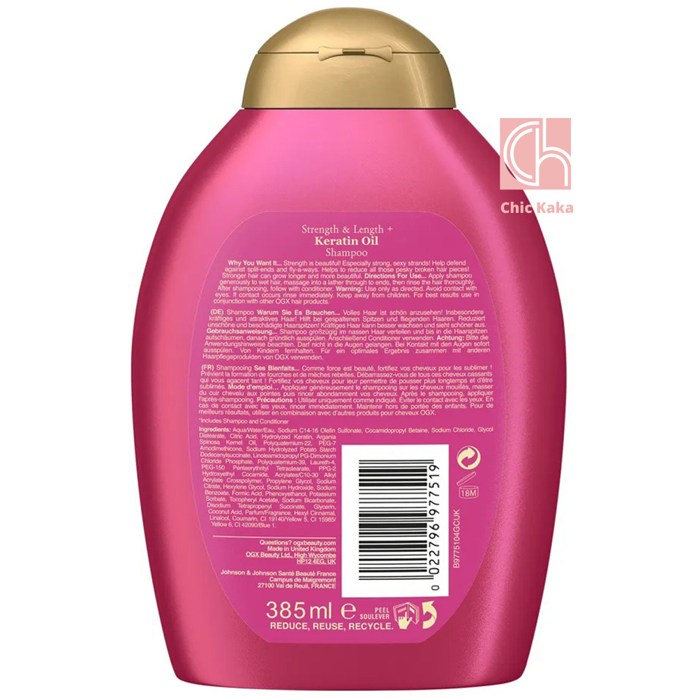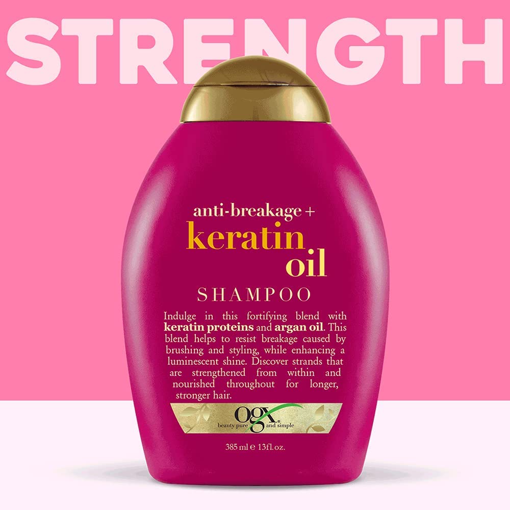 شامپو روغن کراتین OGX مدل Keratin Oil حجم ۳۸۵ml یک شامپوی تقویتکننده و ضد موخوره است که با ترکیب کراتین هیدرولیزشده و روغن آرگان به کاهش شکستگی مو کمک میکند. این شامپو بدون سولفات و پارابن بوده و برای موهای خشک، آسیبدیده، رنگشده و فرخورده مناسب است. موهای شما را نرم، براق، قوی و بدون وز میسازد و رایحهای دلنشین از مرکبات گرم و کهربا باقی میگذارد.