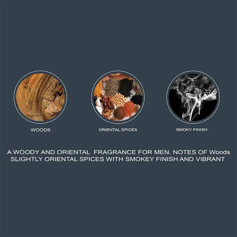 رایحه ابتدایی این عطر با نتهای خنک مرکباتی آغاز میشود و بهسرعت با رایحهای چوبی و مردانه ترکیب میگردد. در نت میانی، ترکیب دلانگیزی از ادویههای گرم و چرم حس اعتمادبهنفس را تقویت میکند، و در نت پایانی، رایحههای عنبر، مشک و وانیل ماندگاری عطر را تکمیل مینمایند.
